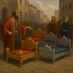 אחשורוש היה עשיר מכל מלכי מדי ופרס, ומה היה עושרו? שהעמיד מטות זהב וכסף ברחובות העיר להראות לכל העמים עושרו, שנאמר: 'מטות זהב וכסף', וכל כלי תשמישיו של אחשורוש לא היו בכלי כסף אלא בכלי זהב, והביא כלי בית המקדש וכלי ביתו. ומכיוון שהוציא כלי בית המקדש קלקל עצמו ונעשו הכלים כעופרת (פדר"א מח). לכן בסוף המגילה היה צריך אחשורוש לשים מס על העם (אבני שי, עמ' כז).